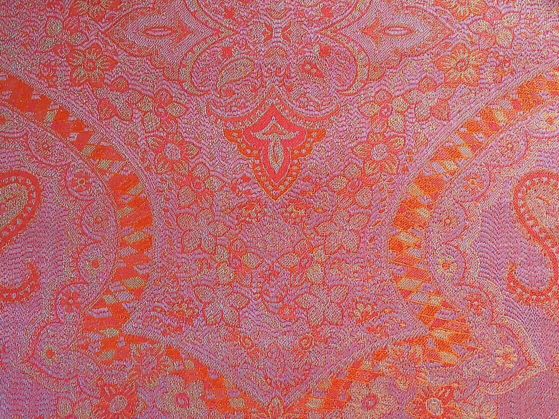 オレンジベースに、水色とピンク模様が、光沢とともに浮び上がります。