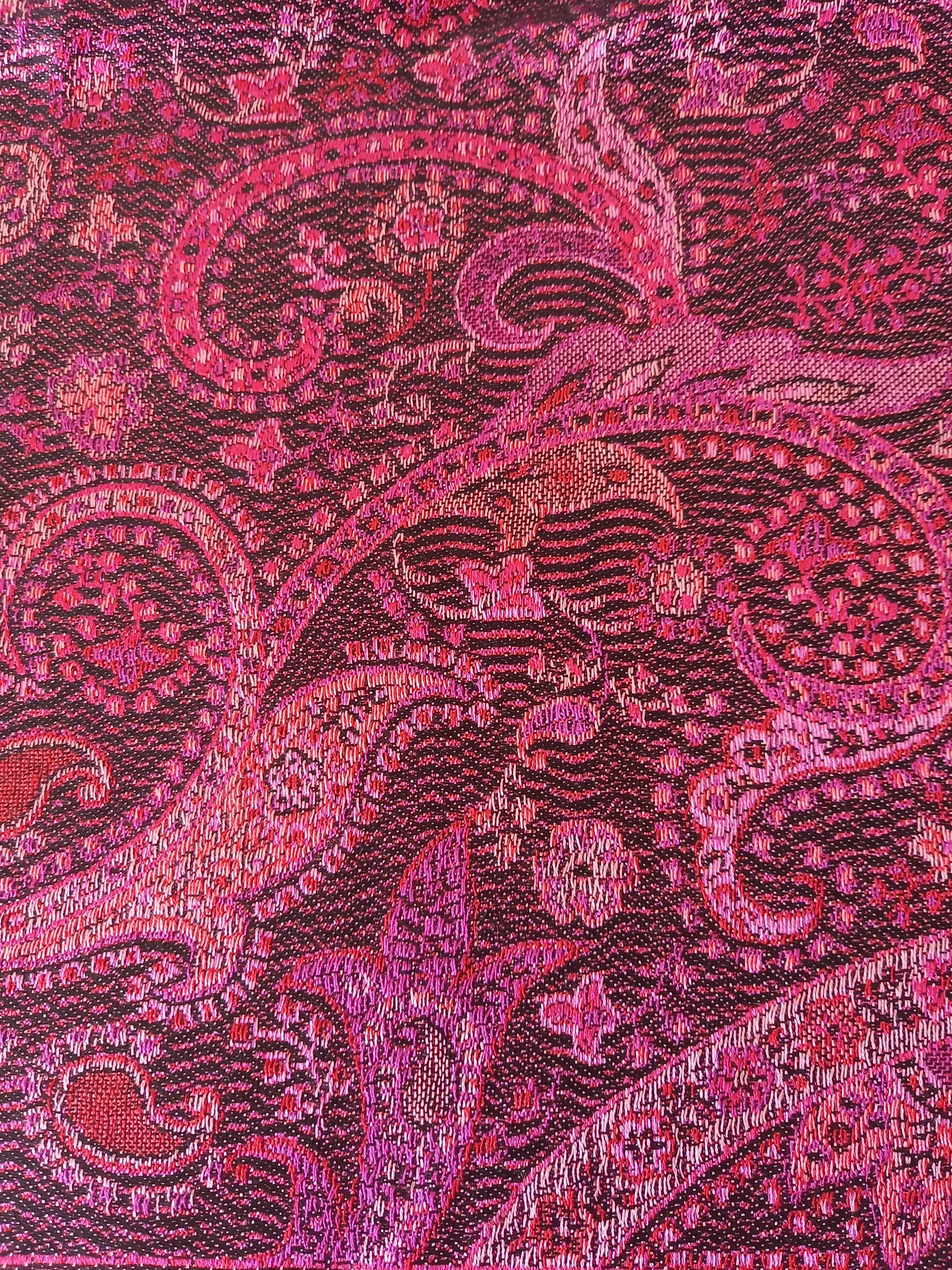 黒ベースに、赤、濃淡ピンクの模様が浮かびます。